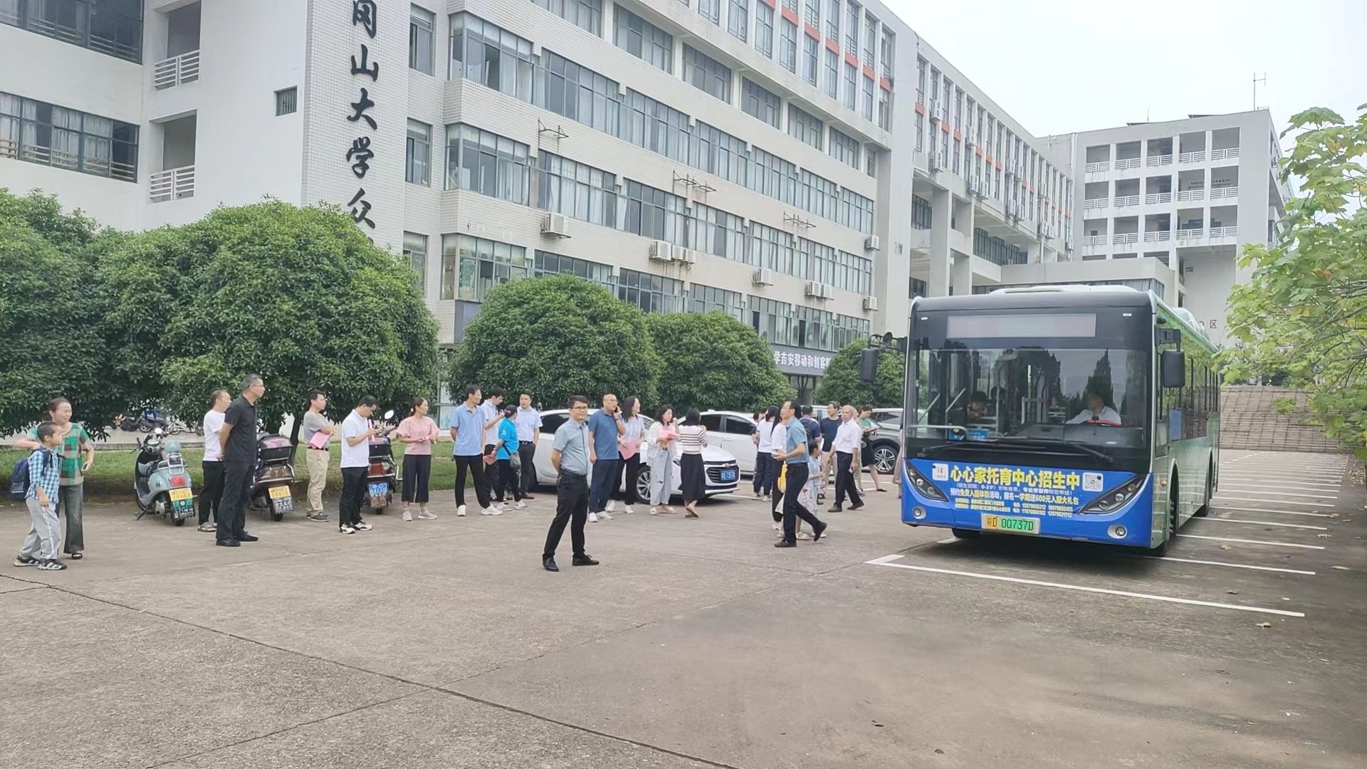 9月4日早上7点15分左右,专门接送我校教职工子女往返校本部至井冈山大学附属翠英学校的学生免费公交车及时停靠在10栋教学楼西边停车场。校党委常委、副校长陈小林、冷明到现场指导,校办、工会、保卫处、附属翠英学校主要负责人及有关工作人员在场有序安排学生上车。