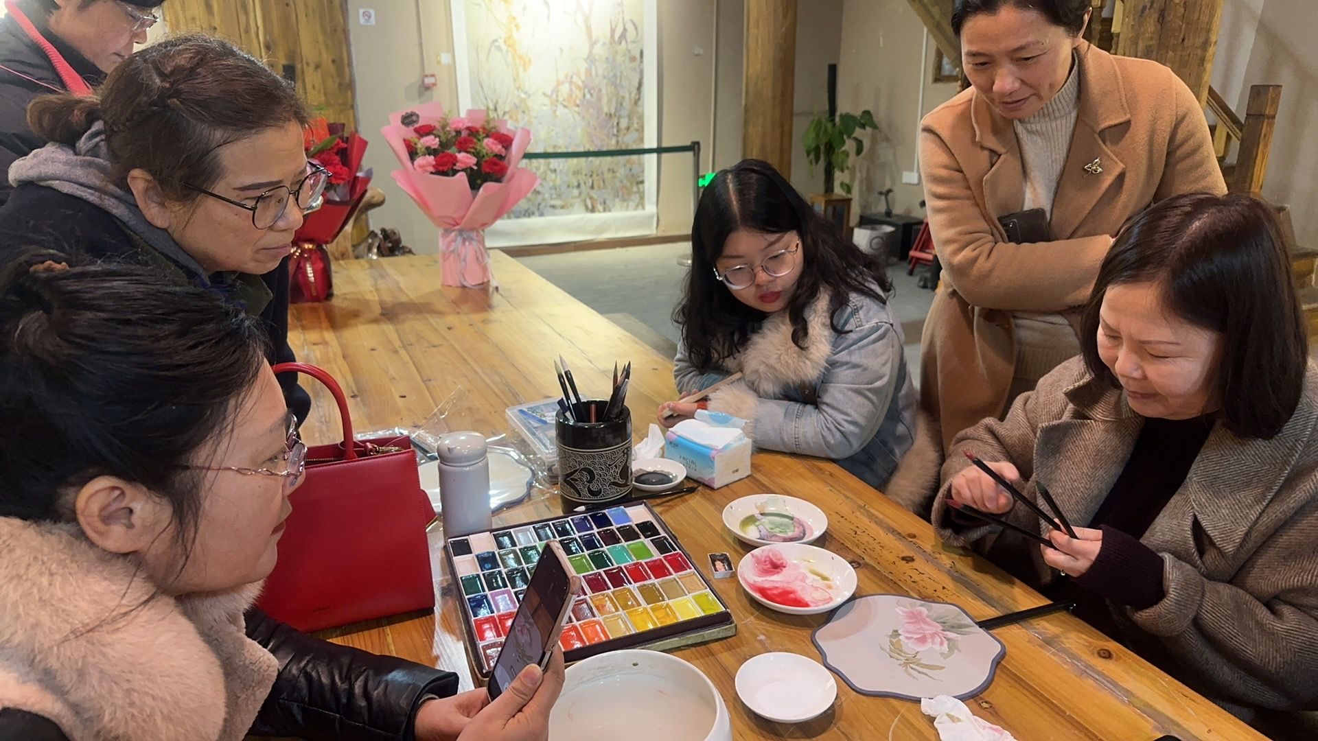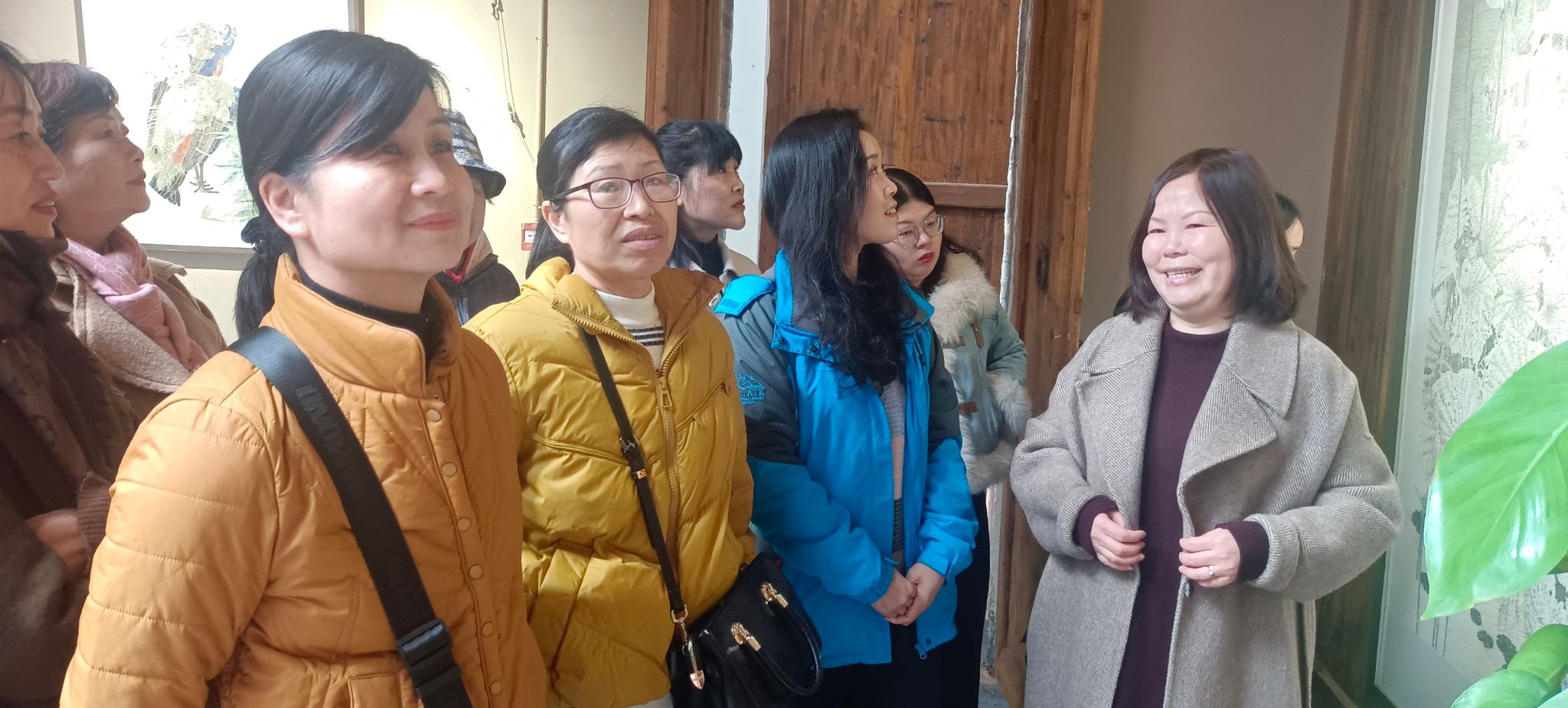3月10日,井冈山大学女性书画爱好者相聚在水巷历史文化街儒陵艺术馆欣赏 “一路生花---廖姝工笔画艺术展”。