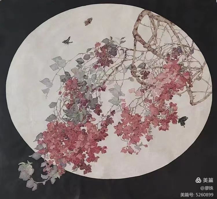 此次展出的作品以花鸟为主题,灵感均来自于女画家对大自然精微的观察和对生活的感悟。爱好者们漫步在艺术馆古色古香的回廊下,在庐陵古建筑天井投射的春光里,聆听着儒陵艺术馆特聘画家廖姝老师的讲解。娓娓动听的讲解如鸟语、如花香,与展厅作品《秋荷》、《望乡》、《相依》、《福满门》、《花繁凫肥》一起编织出如梦如幻的视觉享受,充满了诗情画意。