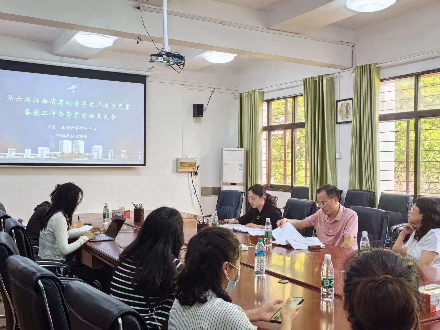 4月28日下午,在4栋教学楼教务处会议室,校工会、教务处联合组织我校参加江西省第六届青年教师讲课比赛决赛的教师召开赛前动员会。校工会主席张霭云、副主席游雪梅、教务处教师发展中心副主任蒋华参加会议,进入决赛的五位教师参加了动员会。