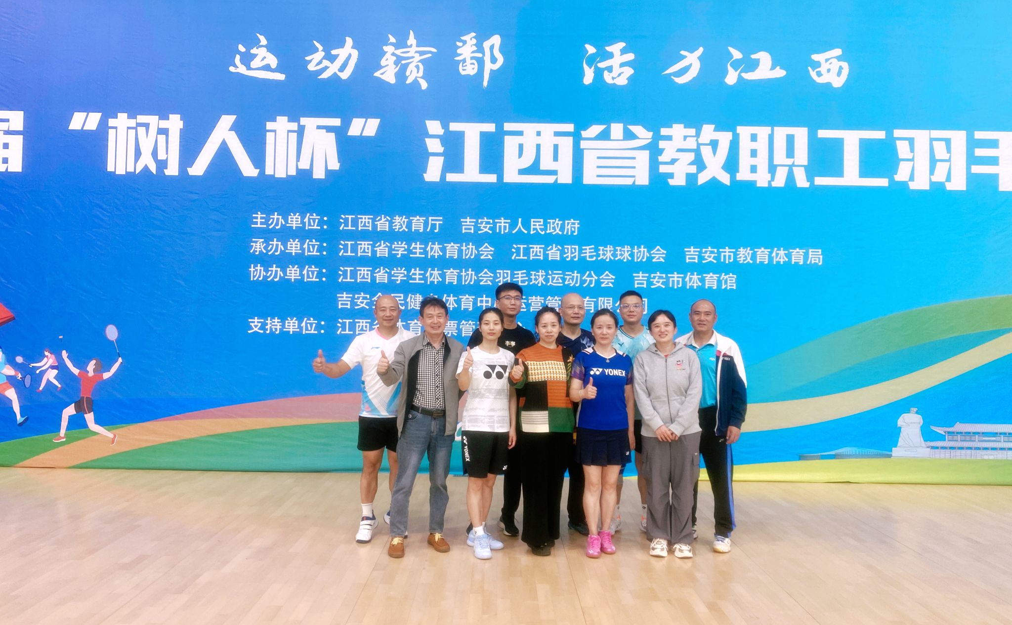 由江西省教育厅、吉安市人民政府主办的第一届“树人杯”江西省教职工羽毛球比赛于10月17日至23日在吉安全民健身体育中心羽毛球馆火热举行。本次比赛汇聚了全省高校和高职院校47支队伍568人参赛,竞争异常激烈。井冈山大学教职工羽毛球队积极应战,每一场比赛都斗志昂扬,配合默契,一路过关斩将,最终,井冈山大学教工羽毛球代表队荣获团体第六名的好成绩,创我校参赛历史最好成绩。