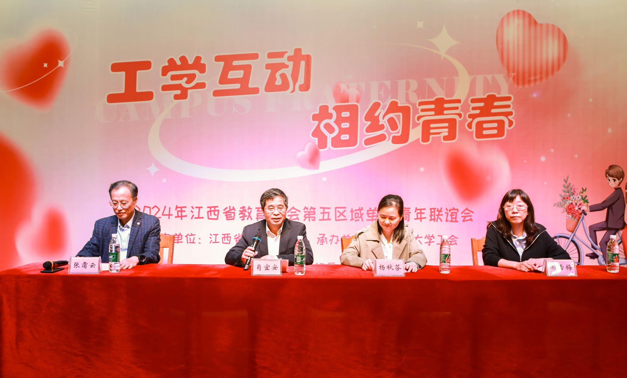 肖宜安在致辞中首先感谢江西省教育工会对单身青年的关心、对井冈山大学工会工作的悉心指导和热情帮助,他充分肯定了举办联谊会的作用及意义,并鼓励单身青年大胆自信展示自我,积极交流互动,多参加类似活动,主动认识交往新朋友。最后,他预祝参加本次单身青年联谊会的帅哥美女找到自己心仪的对象、收获自己幸福甜蜜的爱情。