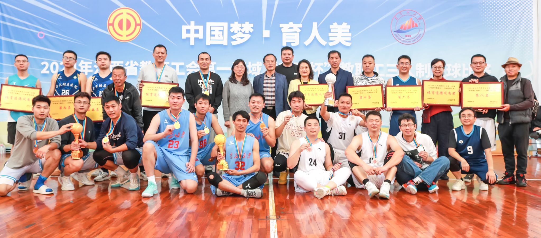 11月1日、2日,由江西省教育工会主办、井冈山大学工会承办的第一区域“庐陵杯”教职工三人制篮球比赛在井冈山大学顺利举办。来自井冈山大学、南昌大学抚州医学院、江西省开放大学、井冈山大学附属医院等12个基层工会代表队的80余名教职工参加了比赛。
