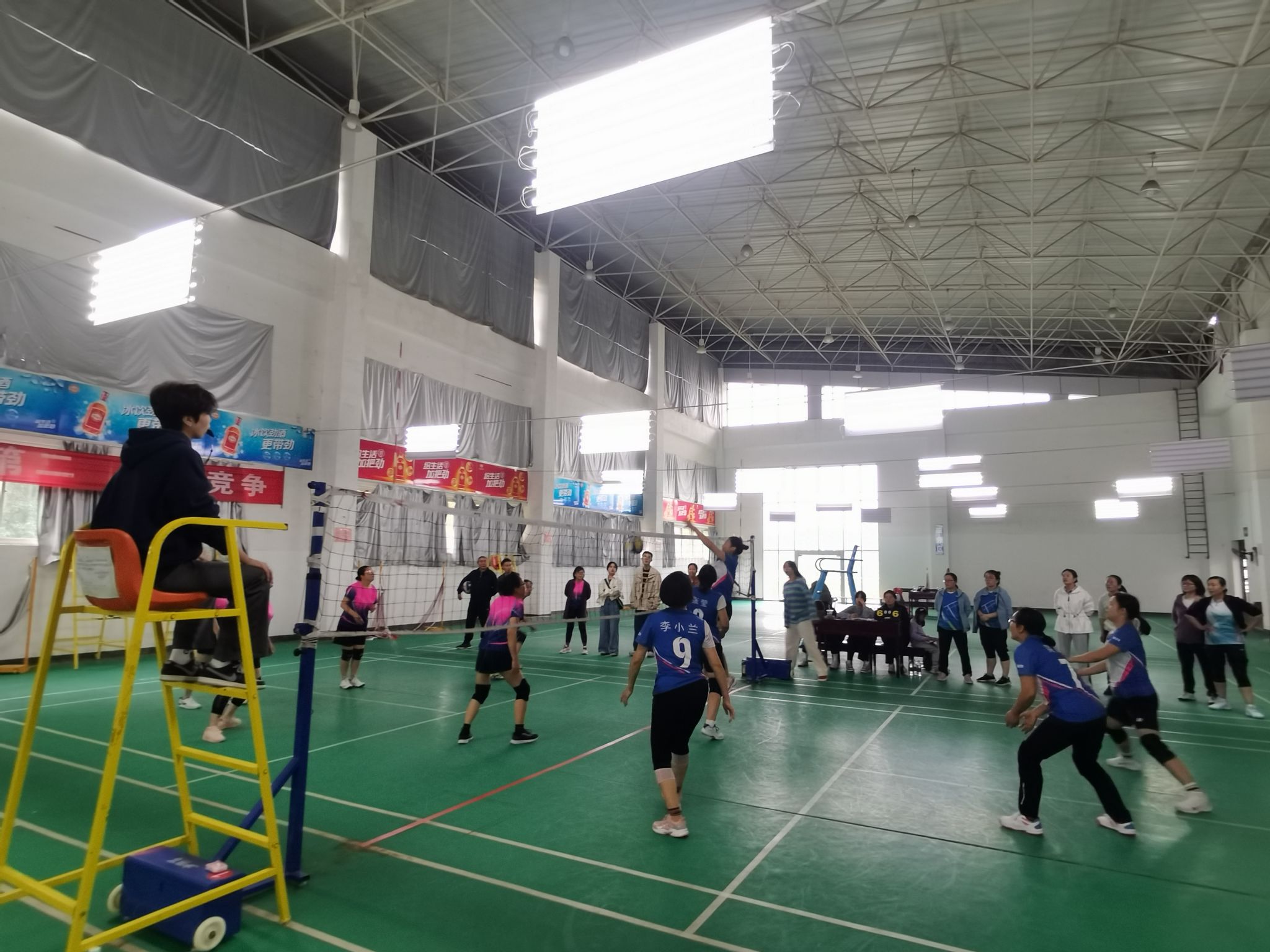 本次比赛在学校的高度重视和校领导的亲切关怀下,在校工会和各分会的精心组织以及体育学院的大力支持协助下,各项赛程圆满结束。本次比赛得到了全校广大教职工的积极响应和热情参与,来自各分会的共有25支教职工男女气排球代表队(其中男子代表队13支、女子代表队12支)近200名教职工参加了比赛。体育学院排球专业的20多位学生在排球教师王保奎的组织指导下,积极参与本次赛事的裁判实践活动,圆满完成了本次赛事的裁判计分统分工作,确保了本次比赛顺利进行。