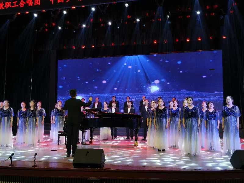 晚会以“颂歌献给党”为开篇,井冈山大学映山红教职工合唱团的一首《没有共产党就没有新中国》激情澎湃,拉开了整场晚会的序幕。在田亚宁老师的精湛指挥和高丽琴老师的悠扬钢琴伴奏下,合唱团成员们深情演绎了这首经典的红色歌曲,展现了井冈山大学教职工对党的坚定信仰和深厚感情。