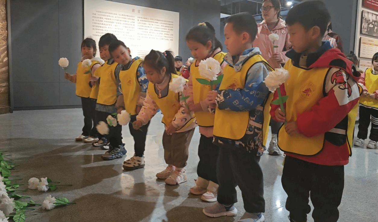 在讲解员的引导下,孩子们驻足观看珍贵文物和历史图片;结合“朱毛会师井冈山”“八角楼的灯光”、“朱德的扁担”等故事,用童言童语讲述革命先辈的英勇事迹。随后,孩子们在长征纪念碑前举行庄严肃穆的献花仪式。孩子们列队向革命先烈鞠躬致敬,将亲手制作的菊花轻轻摆放在纪念碑前,稚嫩的脸庞写满庄重。