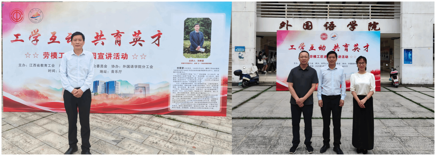此次“工学互动 共育英才”劳模工匠进校园宣讲活动,由江西省教育工会主办、井冈山大学工会承办、井冈山大学外国语学院协办,不仅是一次精神的传承,更是一次“劳动筑梦”的动员。我们相信,广大师生将以刘荣坚书记为榜样,将劳模精神内化于心、外化于行,转化为学习的强大动力,在知识的海洋中深耕细作,厚植工匠品格,在时代的浪潮中磨砺奋斗底色,让青春在“强国复兴有我”的伟大实践中绽放出更加绚丽的光彩!(图/文:盛忠光;审核:李红军、胡闽华、张霭云)
