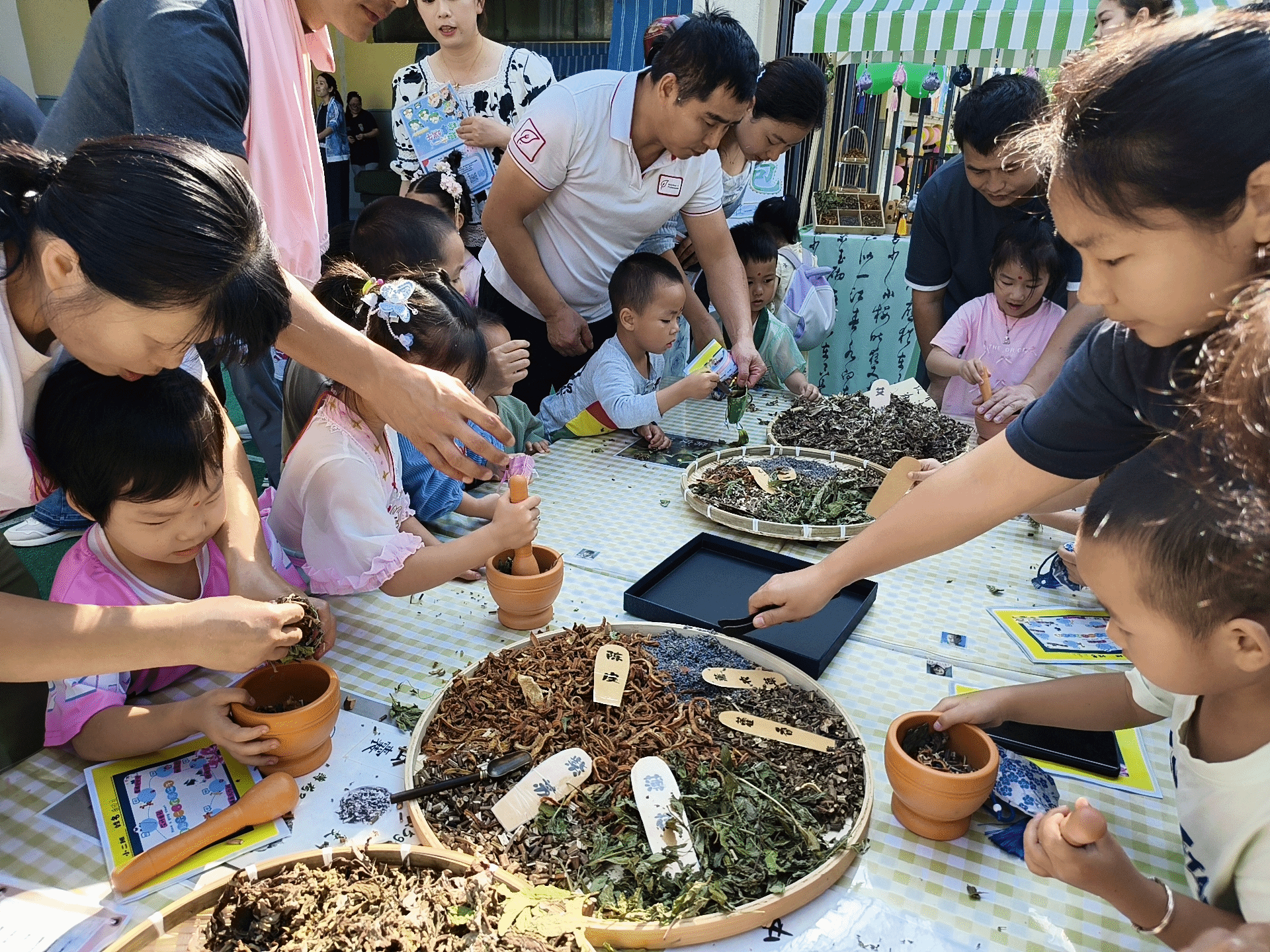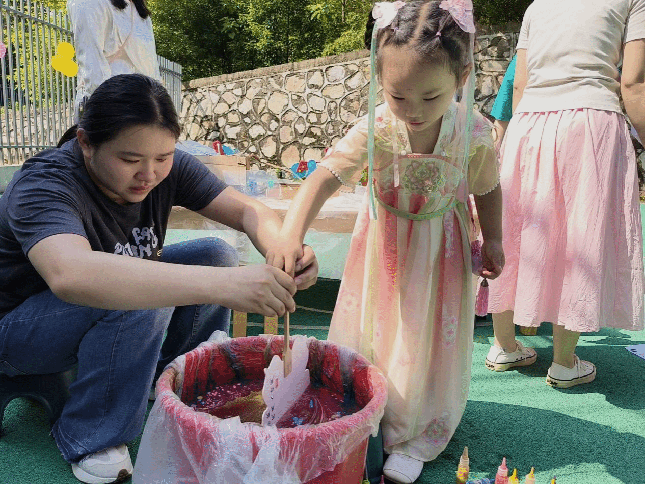 活动现场热闹非凡,精彩纷呈的游戏项目让整个园区变成了欢乐的海洋。老师们精心设计了踏艾草、画面额、手工漆扇、艾叶香包、捞泥鳅等多个融合传统与现代的趣味游戏,既有传承端午习俗的文化体验,又有充满活力的亲子互动。孩子们带着集赞卡和家长们一起感受这难忘的欢乐盛宴。