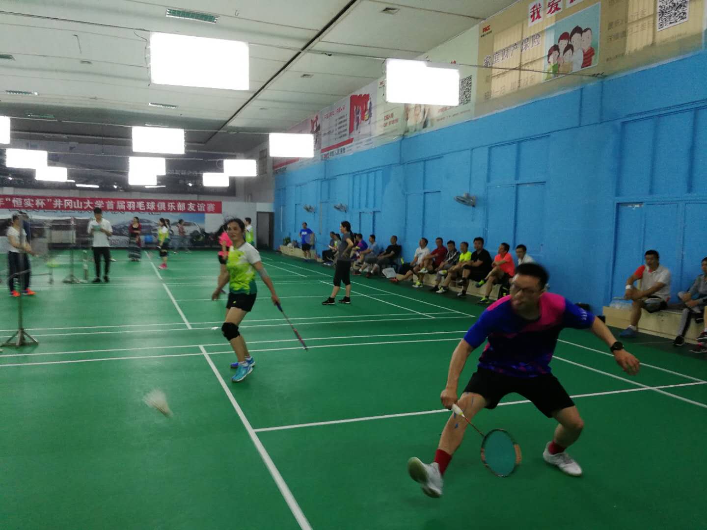 为丰富教职工业余生活,增强身体素质, 校工会于4月27日在教工活动中心举办了2019年教职工羽毛球团体赛。来自各基层工会的14支代表队参加了本届比赛。比赛中,高潮迭起,精彩不绝,场上运动员奋力拼搏,场下各代表队助威呐喊,整个活动中心里气氛十分热烈。经过近四十场的激烈角逐,机关一和体育学院代表队分获冠亚军,数理学院、外国语学院、机关二、生命科学学院、电子信息工程学院和人文学院代表队分列第三至第八名。