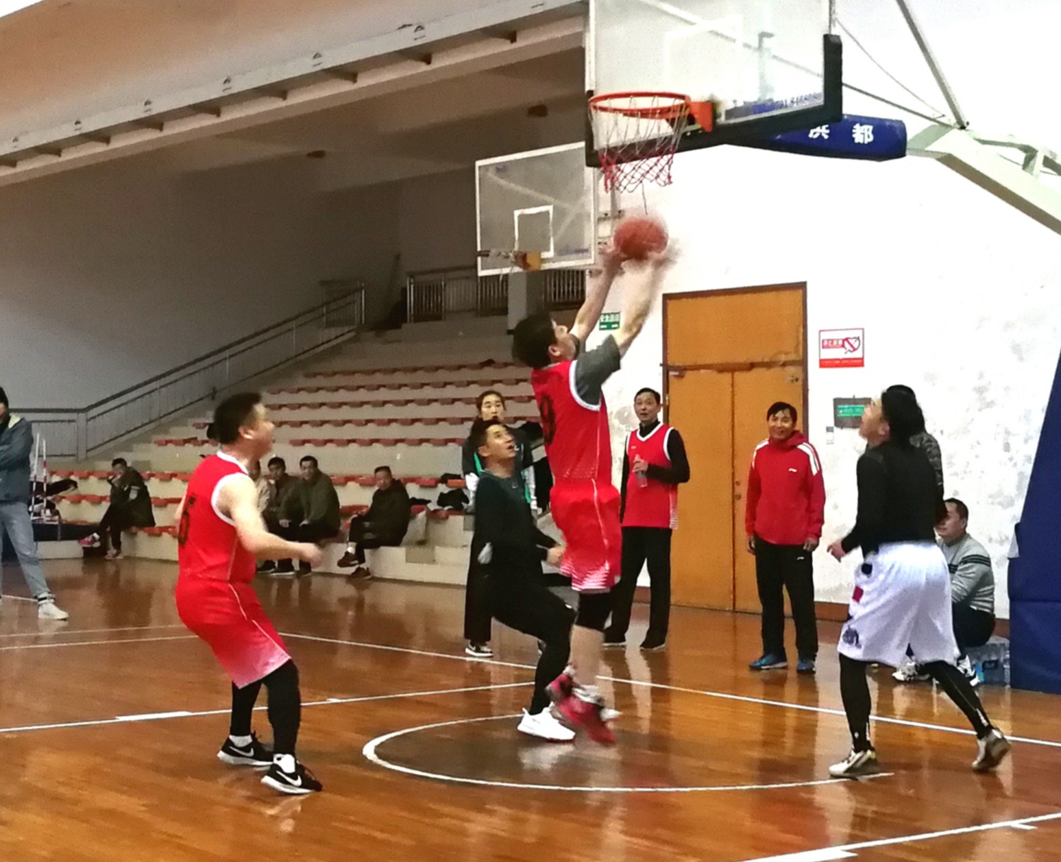 比赛中教职工们你争我夺,进攻、卡位、空切、防守、抢篮板,打的有板有眼,有声有色,比分交替上升,扣人心弦。场下观众加油、呐喊声一片,气氛热烈活跃。赛场上不时可见校领导以及二级学院院长、书记、教授、博士的身影。