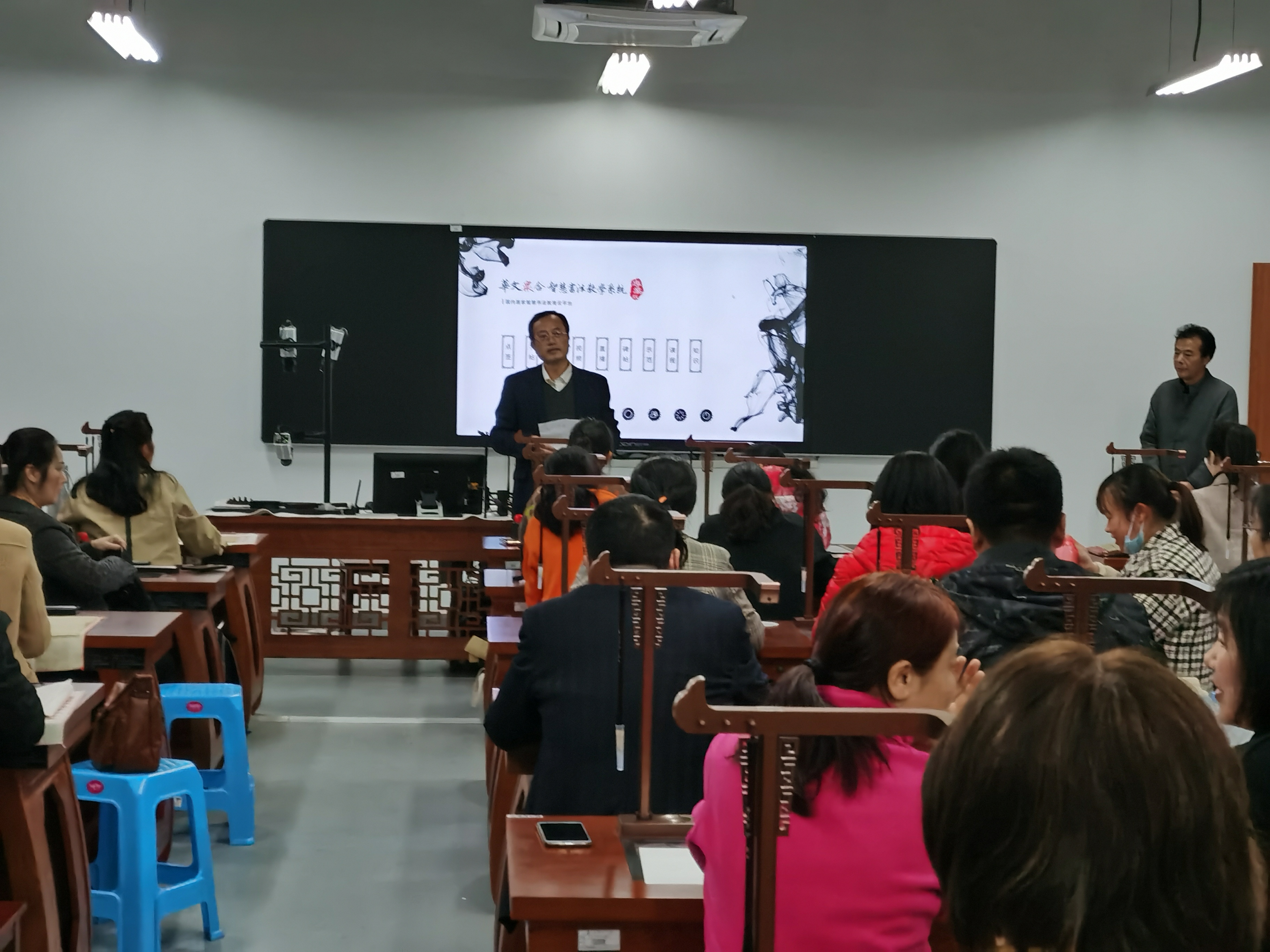 为了庆祝建党100周年,推动党史学习教育务求实效,积极贯彻落实学校党委开展为群众办实事、办好事的统一部署,进一步弘扬中华优秀传统文化,坚定文化自信,更好地帮助教职工培养高雅情趣,提高艺术审美鉴赏能力,增强广大教职工爱校荣校意识,由校工会举办的教职工书法培训班于4月7日晚上七点在网络中心书法教室正式开班,热爱书法的来自学校各部门、各单位的六十多名教职工参加了本次培训,校工会主席张霭云主持。