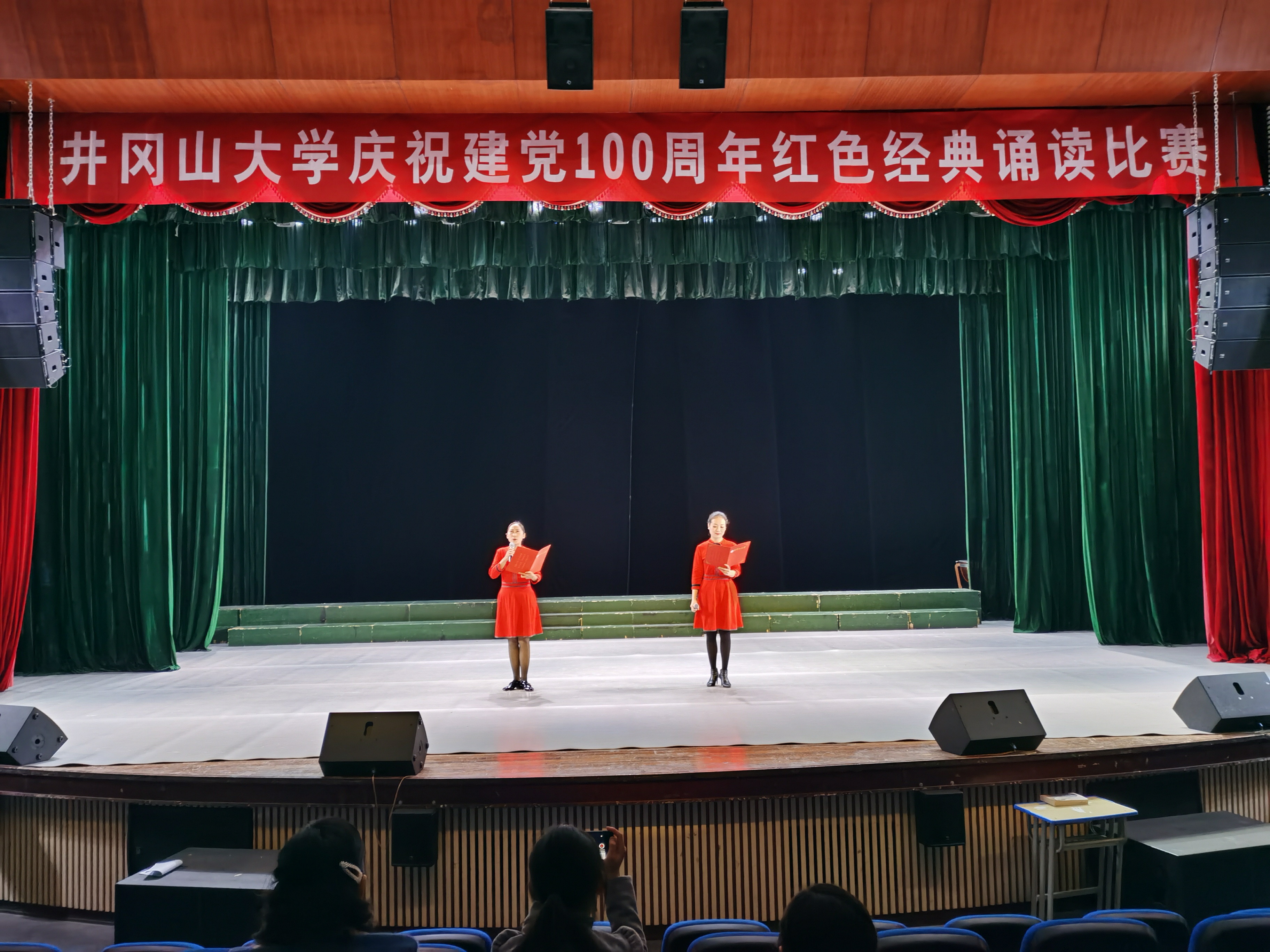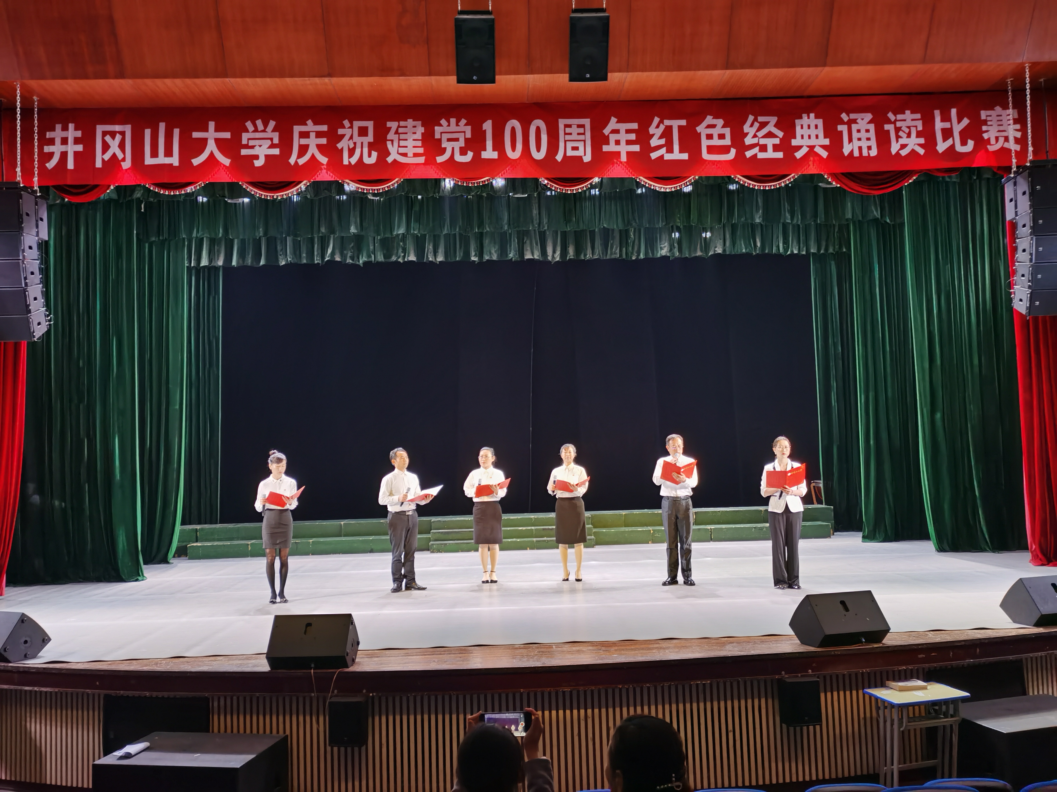 为庆祝中国共产党成立100周年,推动党史学习教育走深走实,4月9日晚,由井冈山大学工会组织的红色经典诵读比赛举行。来自全校各机关分工会以及朗诵协会层层选拔的教职工党员以昂扬的精神,饱含深情地演绎了 《信念永恒》《雪落在中国的土地上》《春天里的中国》《马前托孤》《青春中国》《红色家书》等17个经典作品,回顾了中国共产党100年来风雨激荡与壮丽辉煌的史诗,再现先辈们崇高的革命信仰、救国救民的不懈追求。
