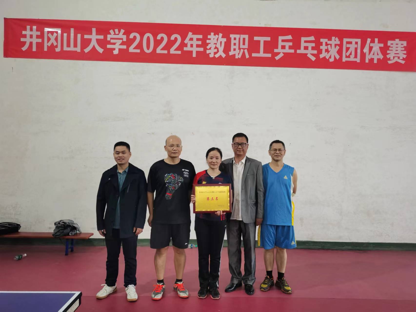 10月16日下午,金秋送爽、丹桂飘香。正当举国同庆二十大胜利召开之际,井冈山大学2022年“映山红”杯教职工团体乒乓球赛经过半天的激烈角逐,在体训馆乒乓球馆圆满落幕,副校长李军带领机关代表队获得了团体第五名,并为获奖代表队颁奖。