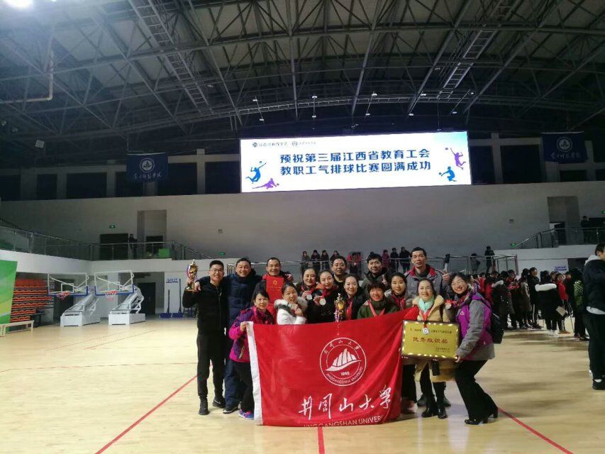 2018年12月11日至12日,由江西省教育工会主办、南昌师范学院承办的第三届江西省教育工会教职工气排球比赛在南昌师范学院举行。来自全省教育工会直属基层工会的39个代表队参加了比赛,比赛分本科组和非本科组两种形式进行,我校派出了由汪清祥、王保奎、胡志坚、罗书嵩、张贯元、张晓春和陈寅邦等七人组成的男子代表队和由张焕卫、江嘉陵、武蓉、陈婧、刘红妹、段春花和王静等七人组成的女子代表队,参加了本科院校组(23支男子代表队和20支女子代表队)的比赛。经过2天紧张激烈的比赛,我校选手发扬团结奋斗、不畏强手、勇于拼搏的精神,最终取得了本科院校组女子第二名和男子第七名的好成绩,我校工会获得“优秀组织奖”。